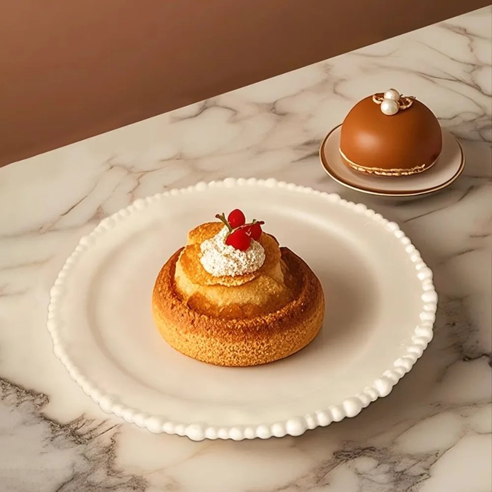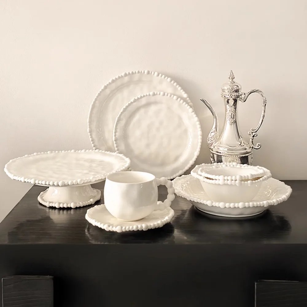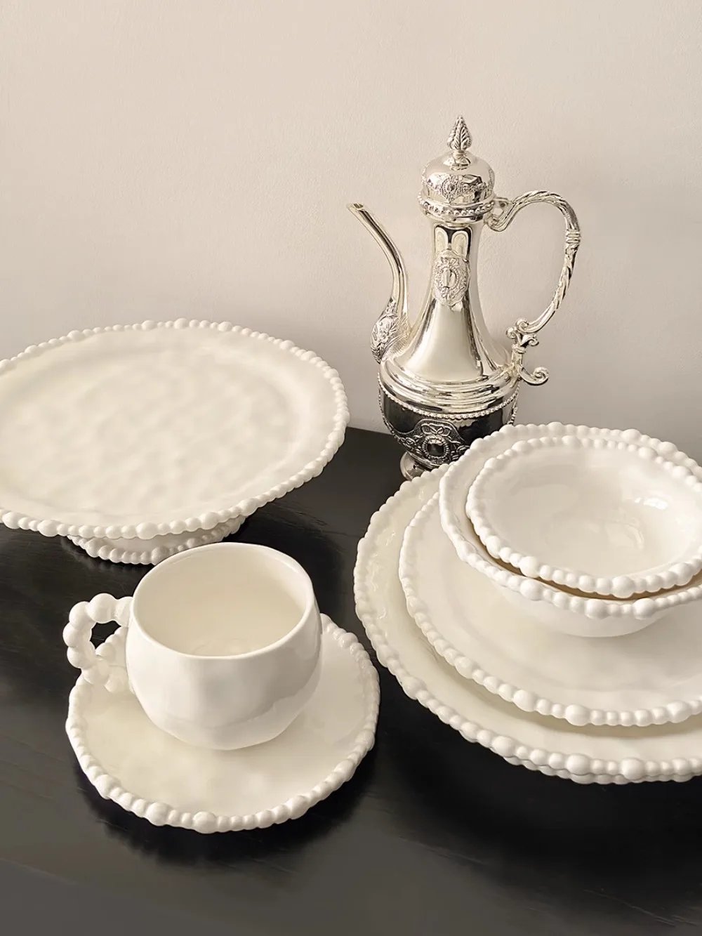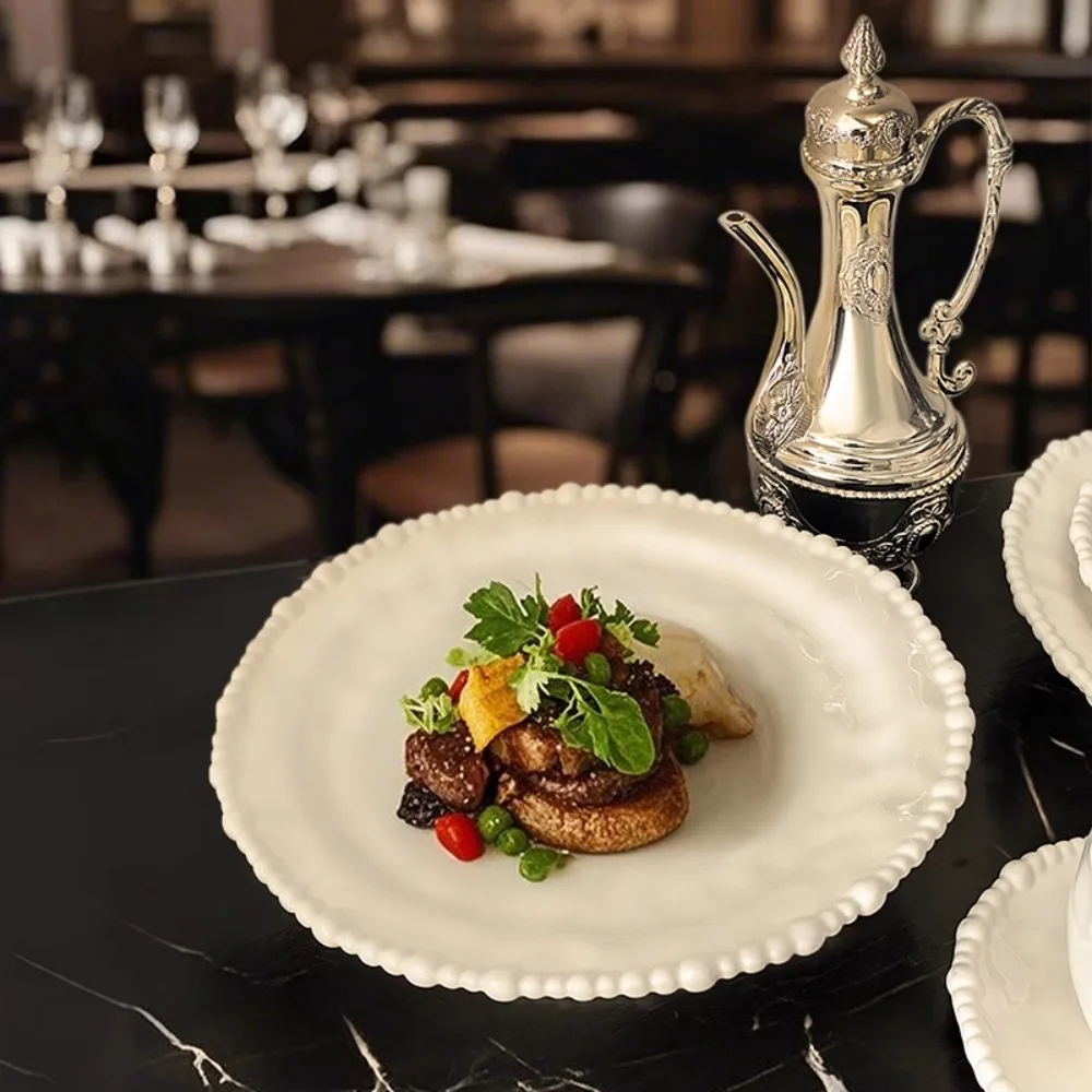 Livetai French Pearl-Edge Ceramic Tableware Set, Versatile Bowl & Plate for Home Dining, Stylish Steak Dinner Plates for Home Decor